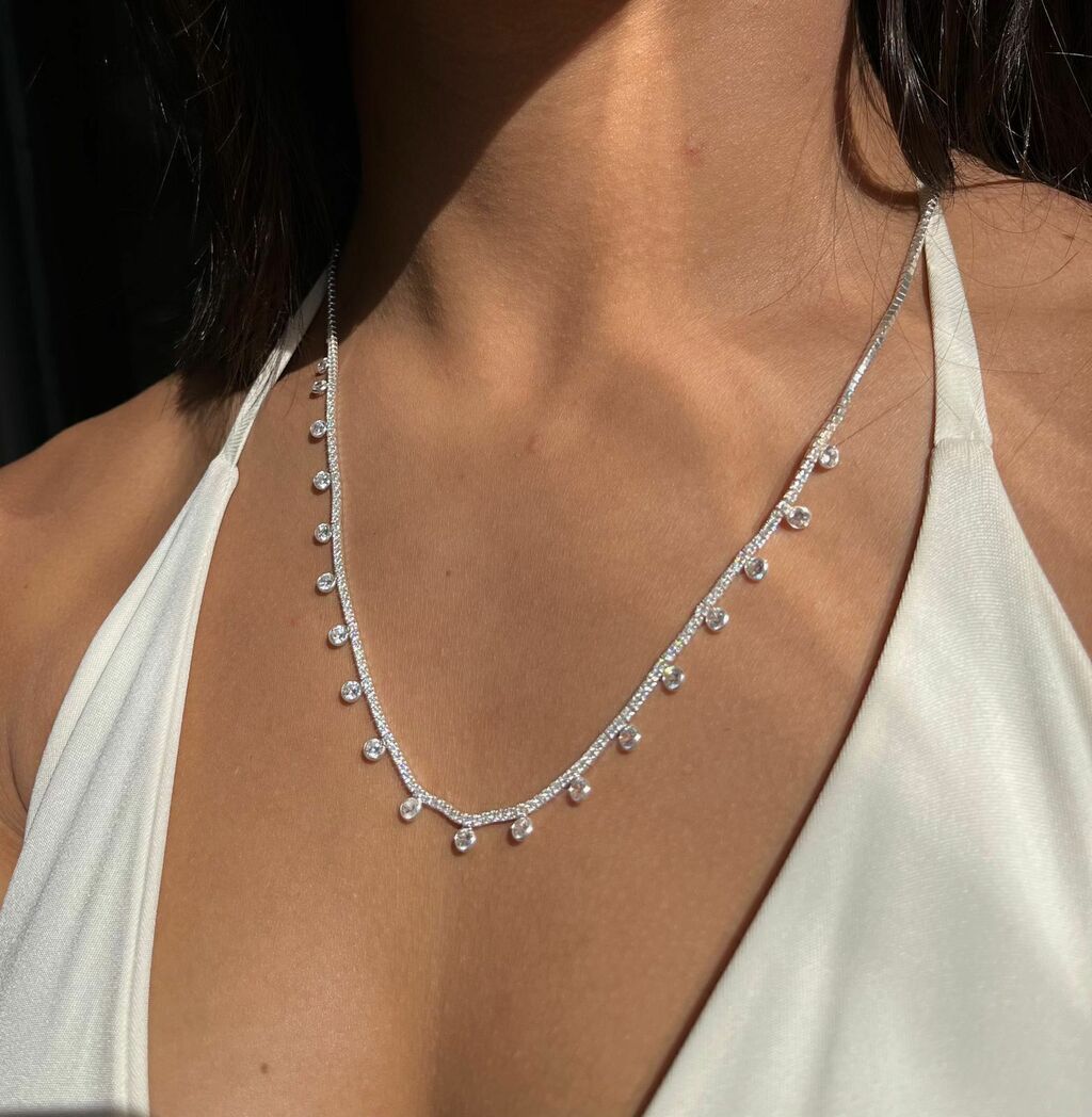 Uma combinação perfeita entre brilho sofisticado e delicadeza atemporal. O Colar Riviera com Ponto de Luz em Prata 925 une o glamour das zircônias cravadas no estilo riviera com o charme discreto do clássico ponto de luz, criando um visual elegante e versátil.